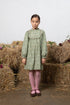 Newest and cutest addition to the collection - Anais dress in signature bohemian garden print in organic cotton. Features long sleeves, darling ruffled collar and front opening with lovely contrast pink buttons and ruffles. Wonderful match with Anais pigtail set.