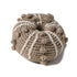 Gently hand crocheted in a circular shape, the sea urchin rattle has hand knotted bauble on the surface and an encased rattle on the inside. Measured at 3 1/2", this textural hand made toy is perfect for little hands to explore touch and sound.