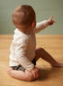 An essential in any wardrobe, our waffle tee, crafted from organic cotton waffle, strikes the perfect balance between light breathability and added warmth for cooler months. With decorative V stitching at the front, along with binding at the neckline and sleeves, this comfy piece effortlessly simplifies dressing your little one. * GOTS certified CU 862149