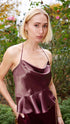 The Twiggy top is cut on the bias in our ‘Hold me tight’ paisley for an effortlessly draped cowl neckline. Designed with an asymmetrical style line for a flirty and added flare effect and adjustable halter straps. Pair it with our Lisa trousers for a poised matching look. A versatile slip to wear on repeat. Made in NY.